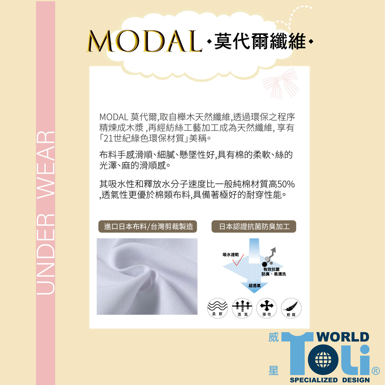 成分:莫代爾48%、棉48%、彈性纖維4%