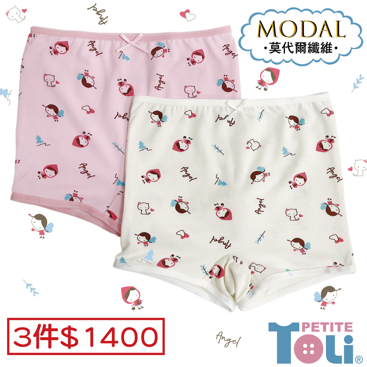 (單件)台灣女童莫代爾四角內褲